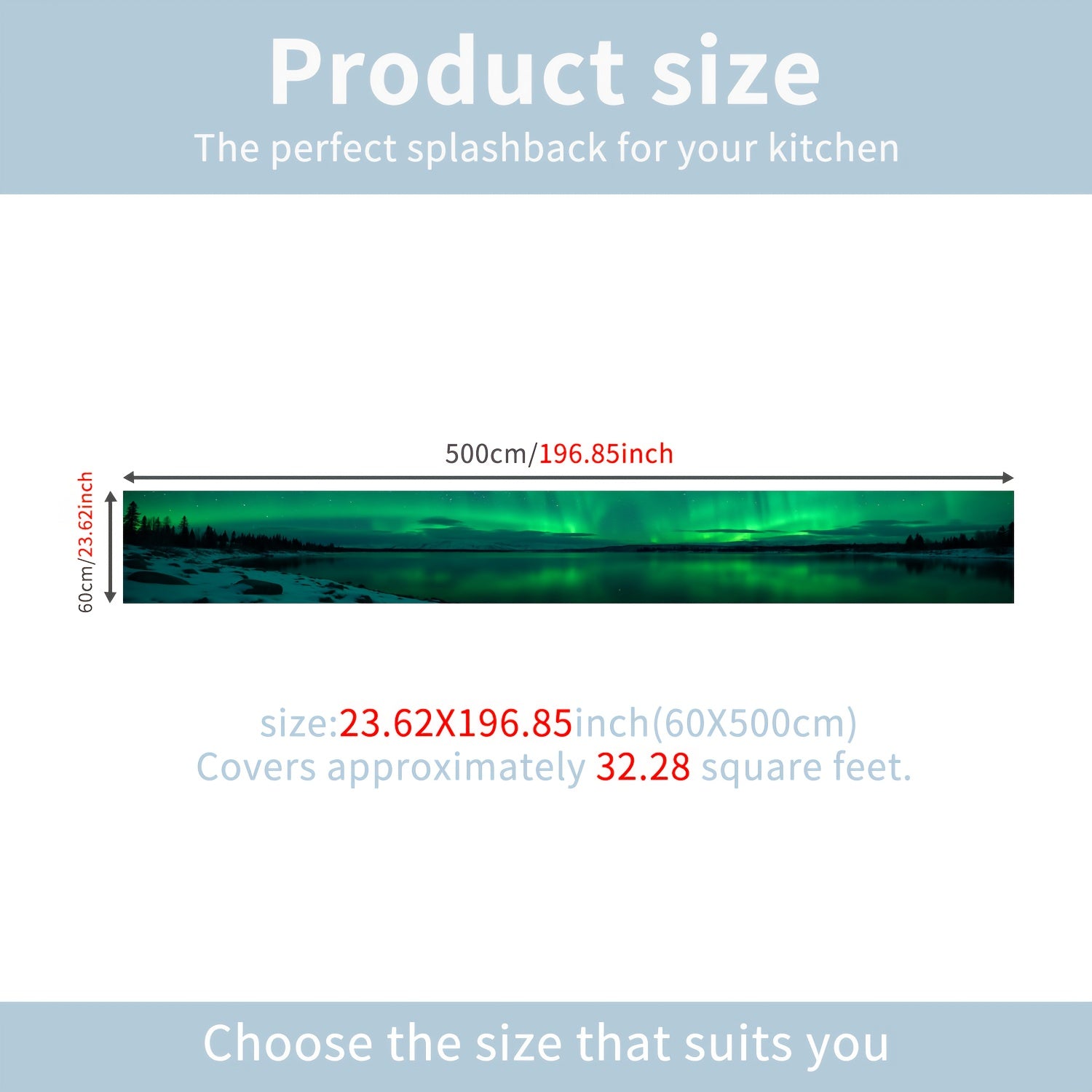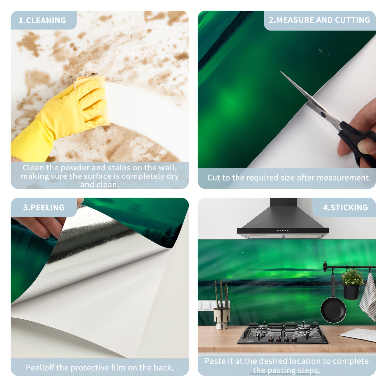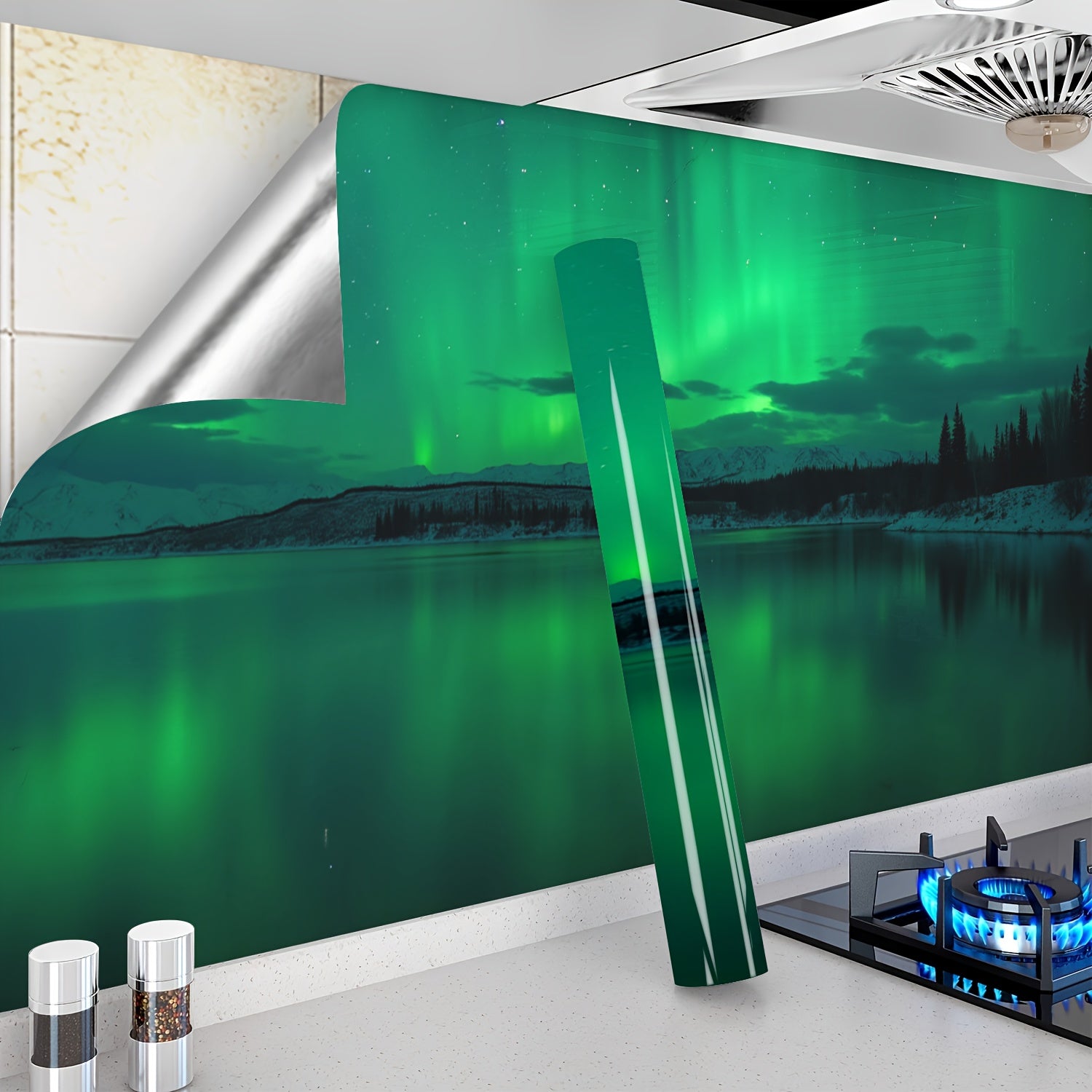 Die AuroGlow Folie verleiht Ihrer Küche oder Ihrem Bad einen modernen, schimmernden Touch. Mit ihrem grünen Aurora-Muster und glänzenden Finish schafft diese selbstklebende Vinyl-Tapete einen eleganten Küstenstil. Ölbeständig, wasserfest und leicht zu reinigen – ideal für Küchenrückwände, Wohnzimmerwände oder Keramikoberflächen. Einfach abziehen, aufkleben und fertig! Die perfekte Kombination aus Design, Funktionalität und Langlebigkeit.