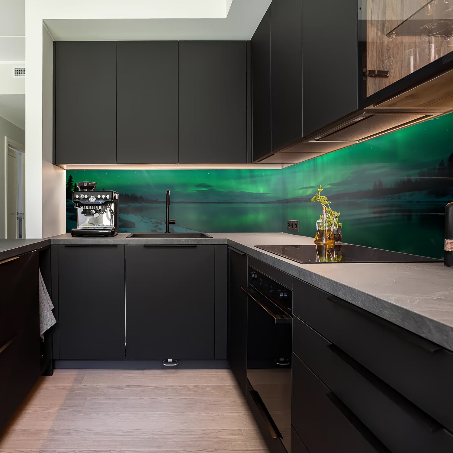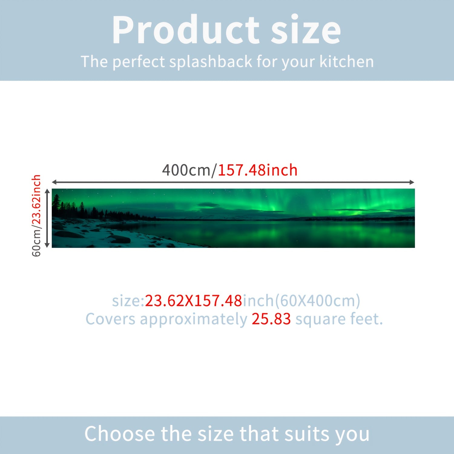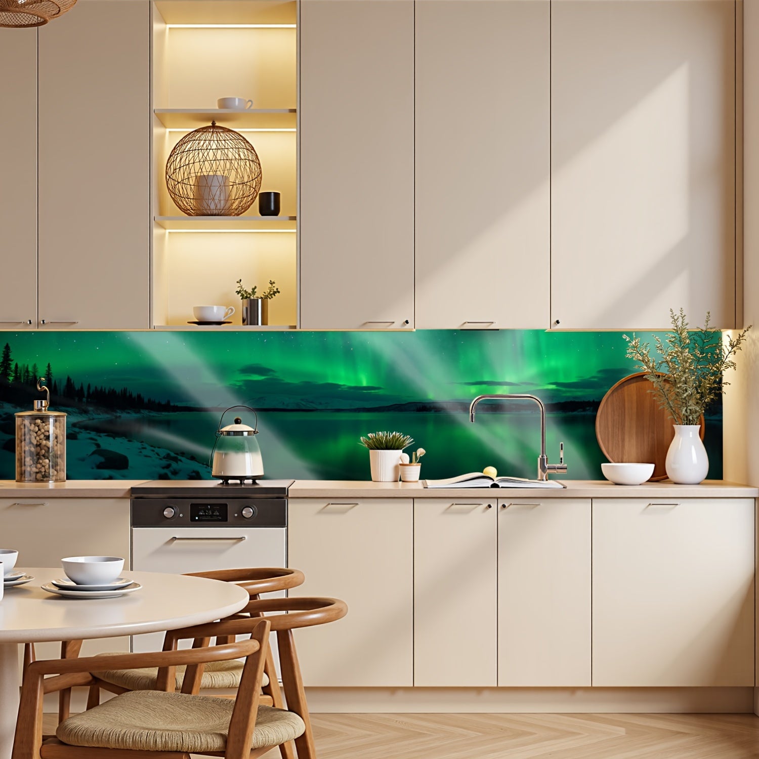 Die AuroGlow Folie verleiht Ihrer Küche oder Ihrem Bad einen modernen, schimmernden Touch. Mit ihrem grünen Aurora-Muster und glänzenden Finish schafft diese selbstklebende Vinyl-Tapete einen eleganten Küstenstil. Ölbeständig, wasserfest und leicht zu reinigen – ideal für Küchenrückwände, Wohnzimmerwände oder Keramikoberflächen. Einfach abziehen, aufkleben und fertig! Die perfekte Kombination aus Design, Funktionalität und Langlebigkeit.