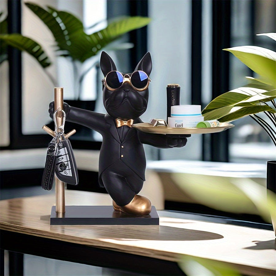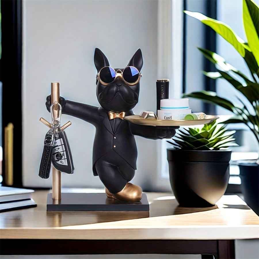 Der Bulldog Butler ist mehr als nur eine Skulptur – er ist ein stilvoller Begleiter für Ihr Zuhause. Diese moderne Bulldog-Dekofigur aus hochwertigem Harz dient gleichzeitig als Aufbewahrungstablett für Schlüssel, Münzen oder Snacks. Perfekt für den Eingangsbereich, das Wohnzimmer oder die Bar. Mit seinem edlen Design in Schwarz und Gold verleiht er jedem Raum Charakter. Eine originelle Geschenkidee zu Weihnachten oder für Hundeliebhaber mit Sinn für Stil.