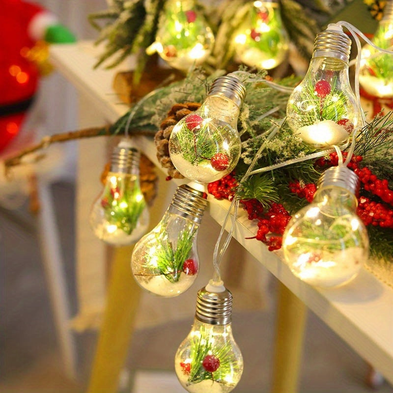 Die FrostGlow Lights bringen magische Winterstimmung in Ihr Zuhause. Diese 200 cm lange Weihnachtslichterkette mit 10 warmweißen LED-Glühbirnen ist liebevoll mit Kieferblättern, roten Beeren und Schneeflocken verziert – perfekt für Fenster, Kamin, Schlafzimmer oder Weihnachtsbaum. Das sanfte Licht schafft eine gemütliche Atmosphäre und verleiht jeder Weihnachtsdekoration einen Hauch von Zauber und Farbe. Energiesparend, langlebig und ideal für festliche Raumgestaltung.